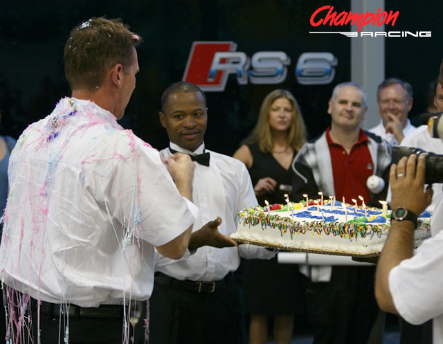 Pobst. Here he is getting pelted with Silly String by the other Audi